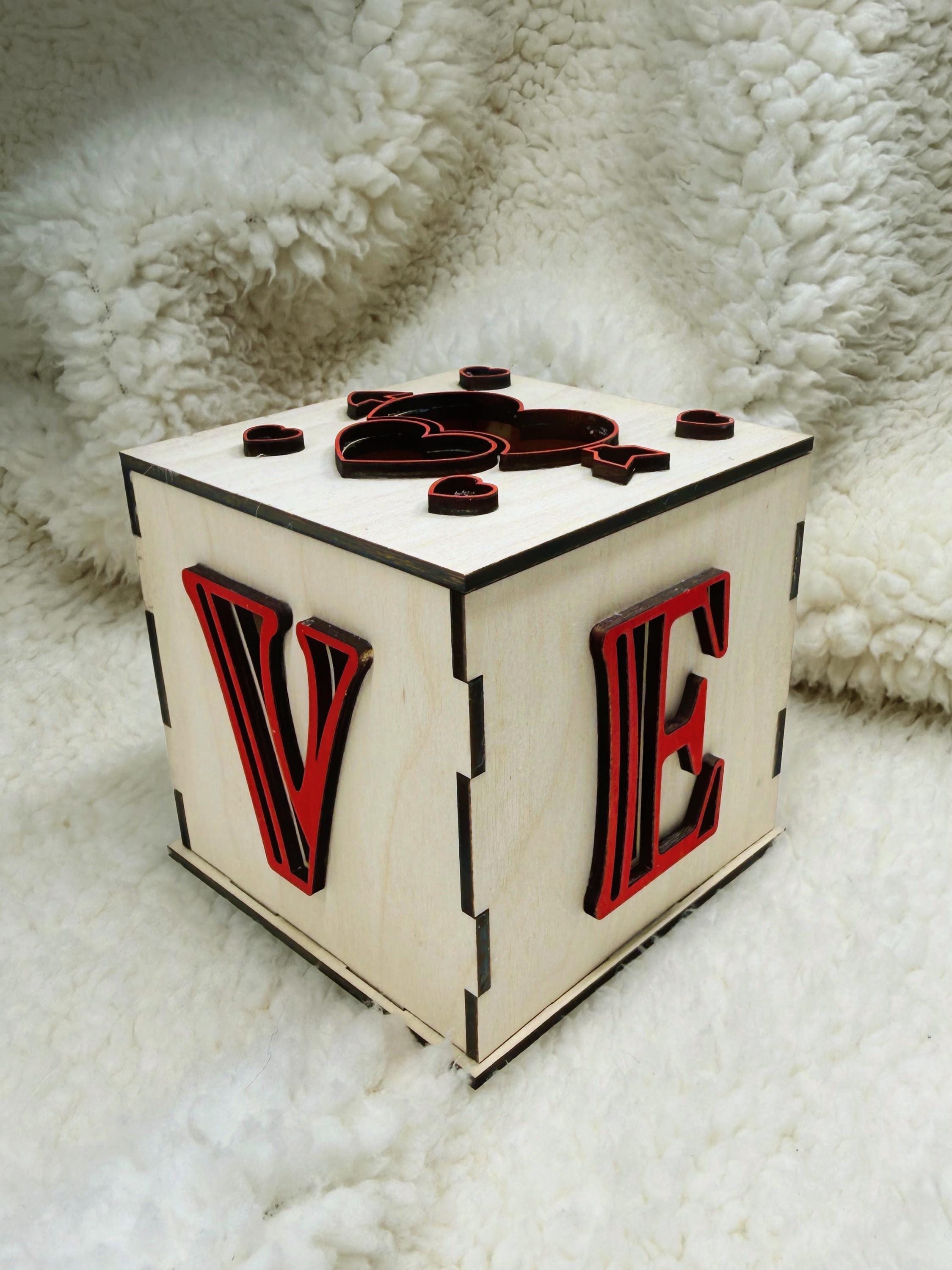 This handcrafted wooden LOVE candle holder adds a warm, romantic glow to any space. Featuring layered laser-cut letters and heart details, the candlelight shines softly through the design for a cozy, intimate feel.