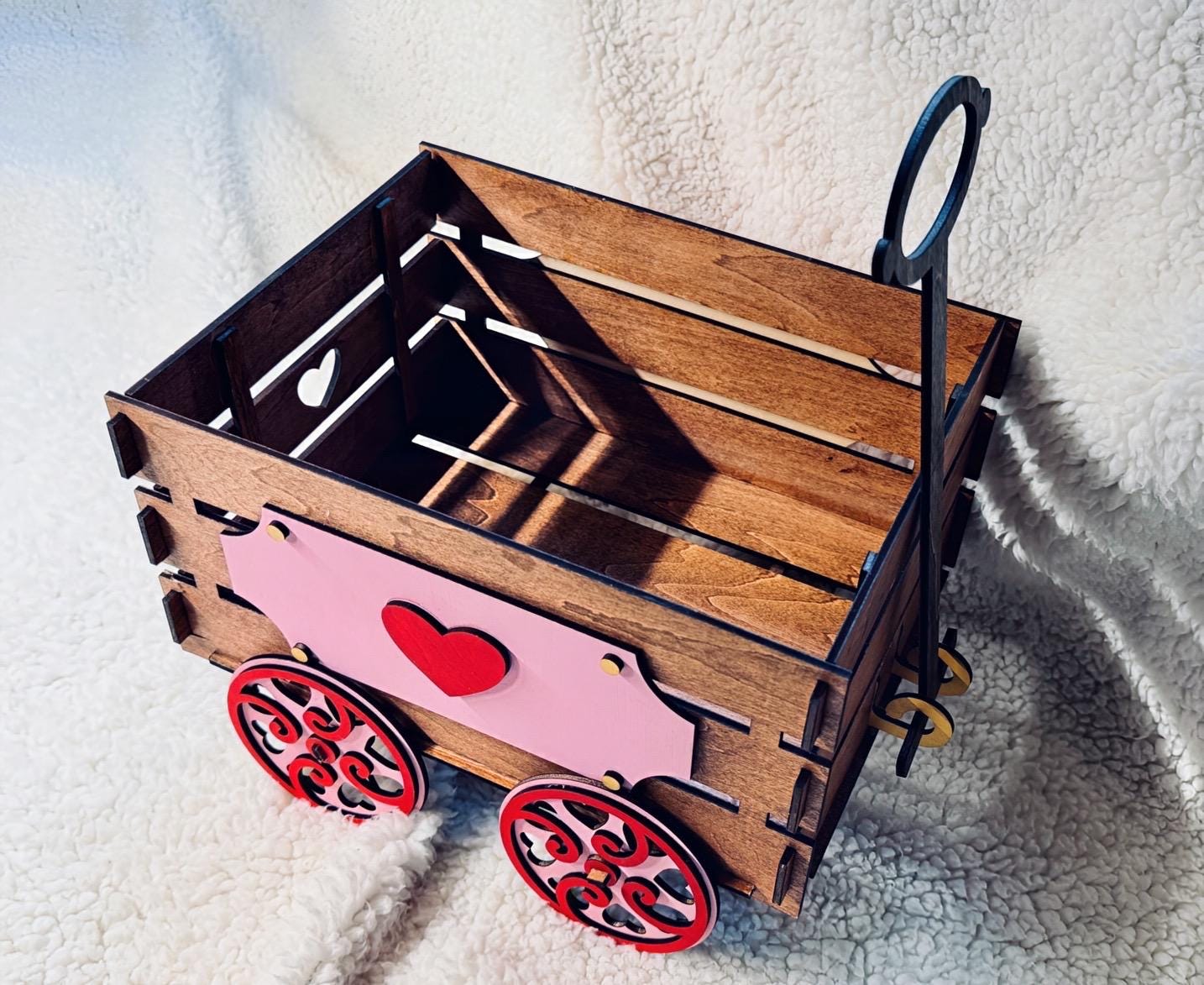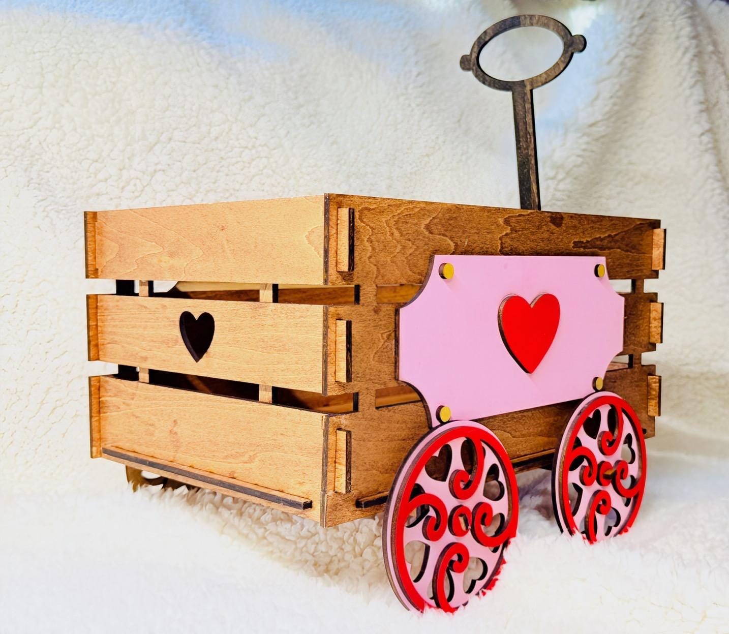 This handcrafted wooden LOVE wagon is the perfect accent for Valentine’s Day displays. With layered wood details, heart accents, and decorative wheels, it adds a cozy, romantic touch to shelves, mantels, and tiered trays.